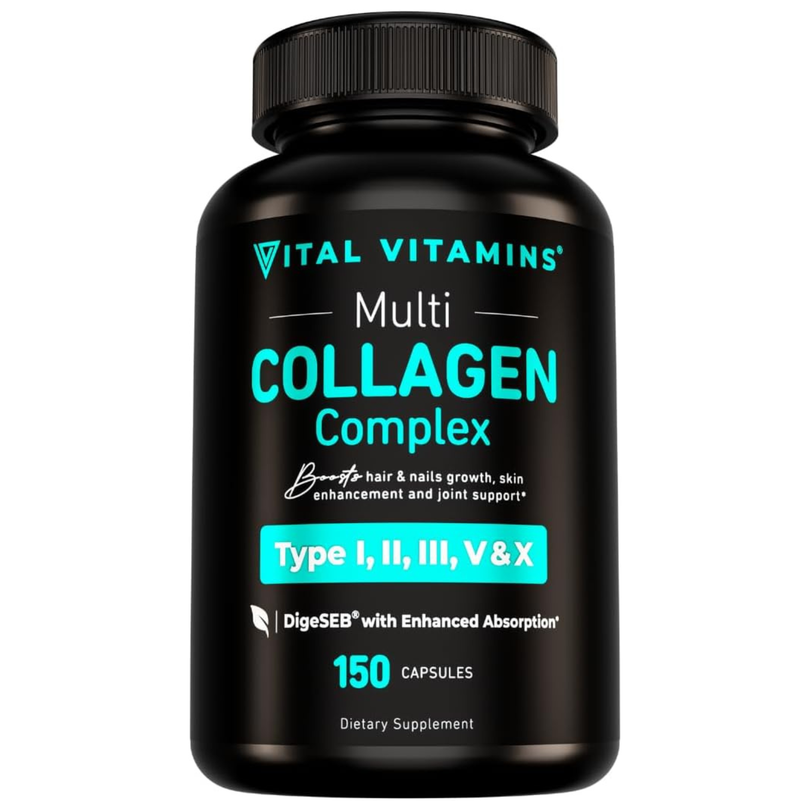 مركب فيتامين فايتال متعدد الكولاجين – النوع I، II، III، V، وX والأغذية العشبية وغير المعدلة وراثيًا، 150 كبسولة