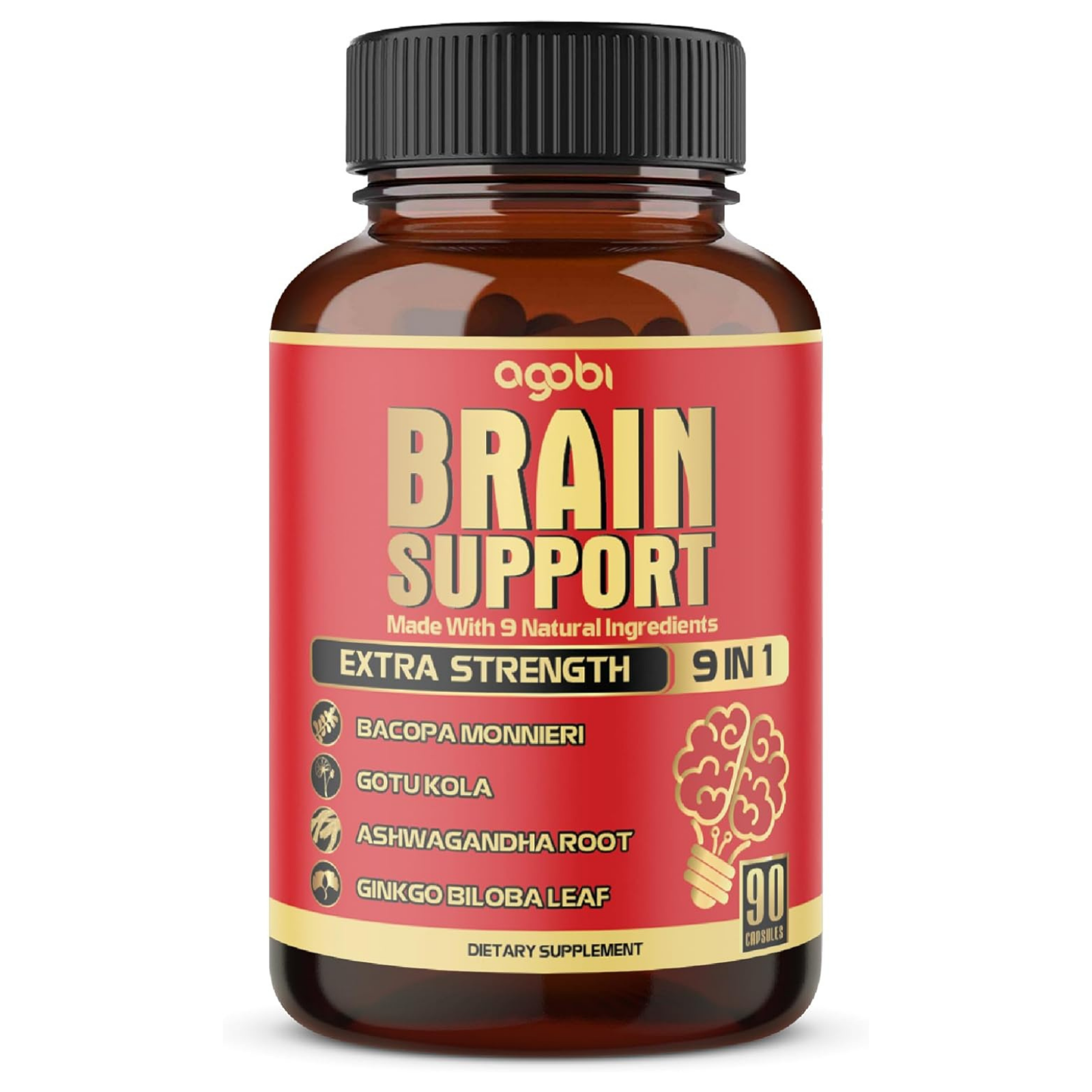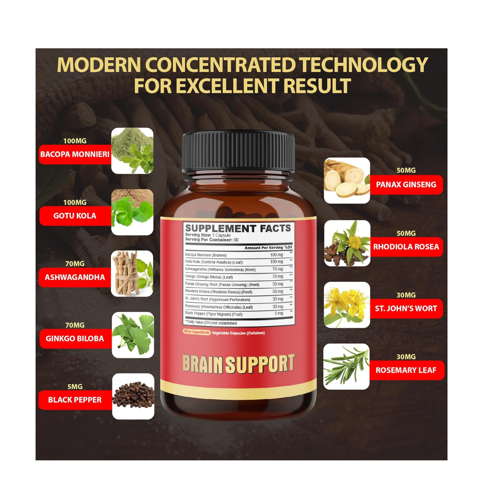 مكمل دعم الدماغ 9 في 1 – جذر اشواغاندا المركز ومسحوق جوتو كولا ومسحوق باكوبا مونيري والمزيد – 90 كبسولة