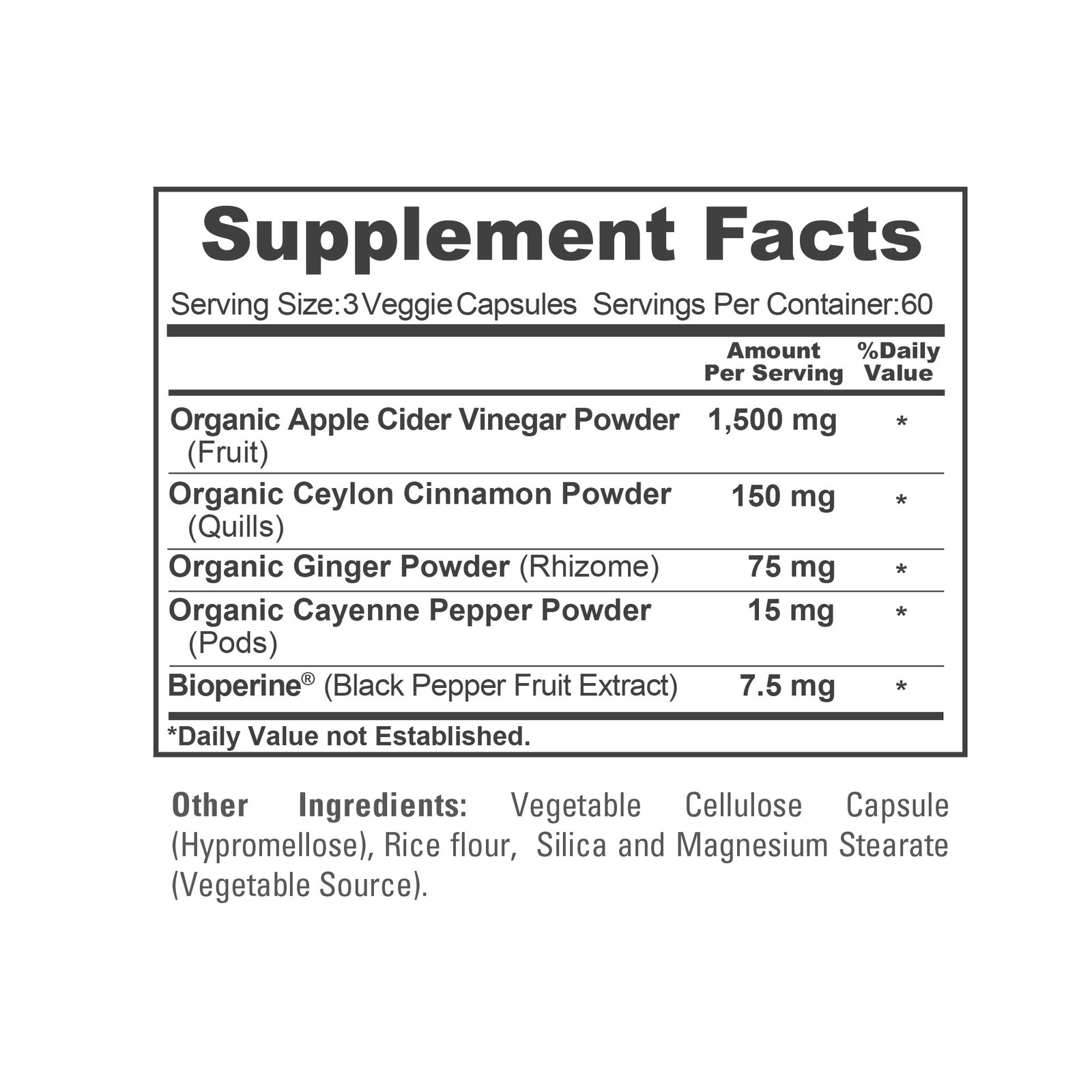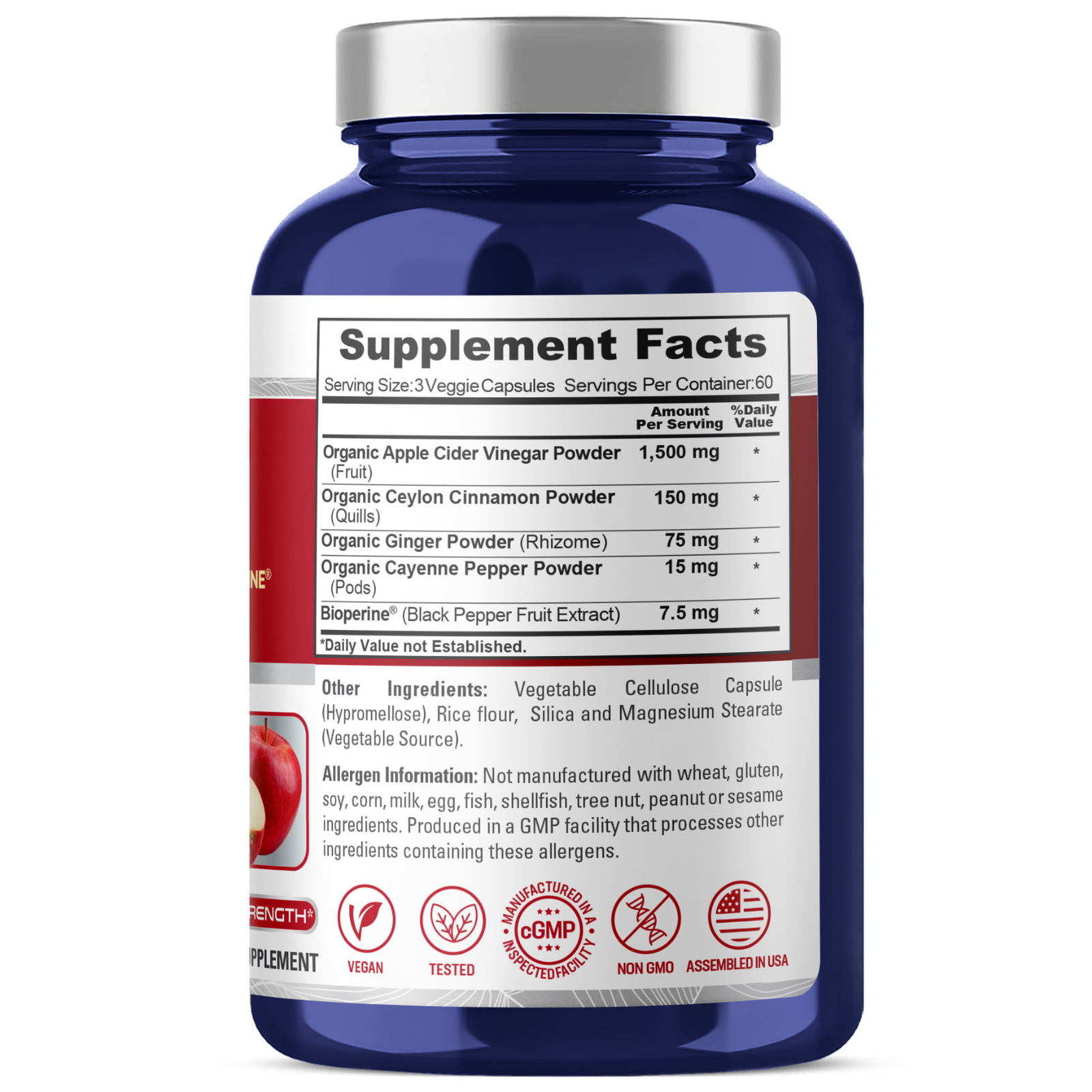 - With Bioperine and organic apple cider vinegar powder.