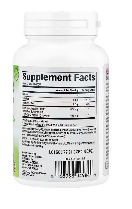 ناتورال فاكتورز, Berberine LipoMicel Matrix ، 500 ملجم ، 60 كبسولة هلامية سائلة
