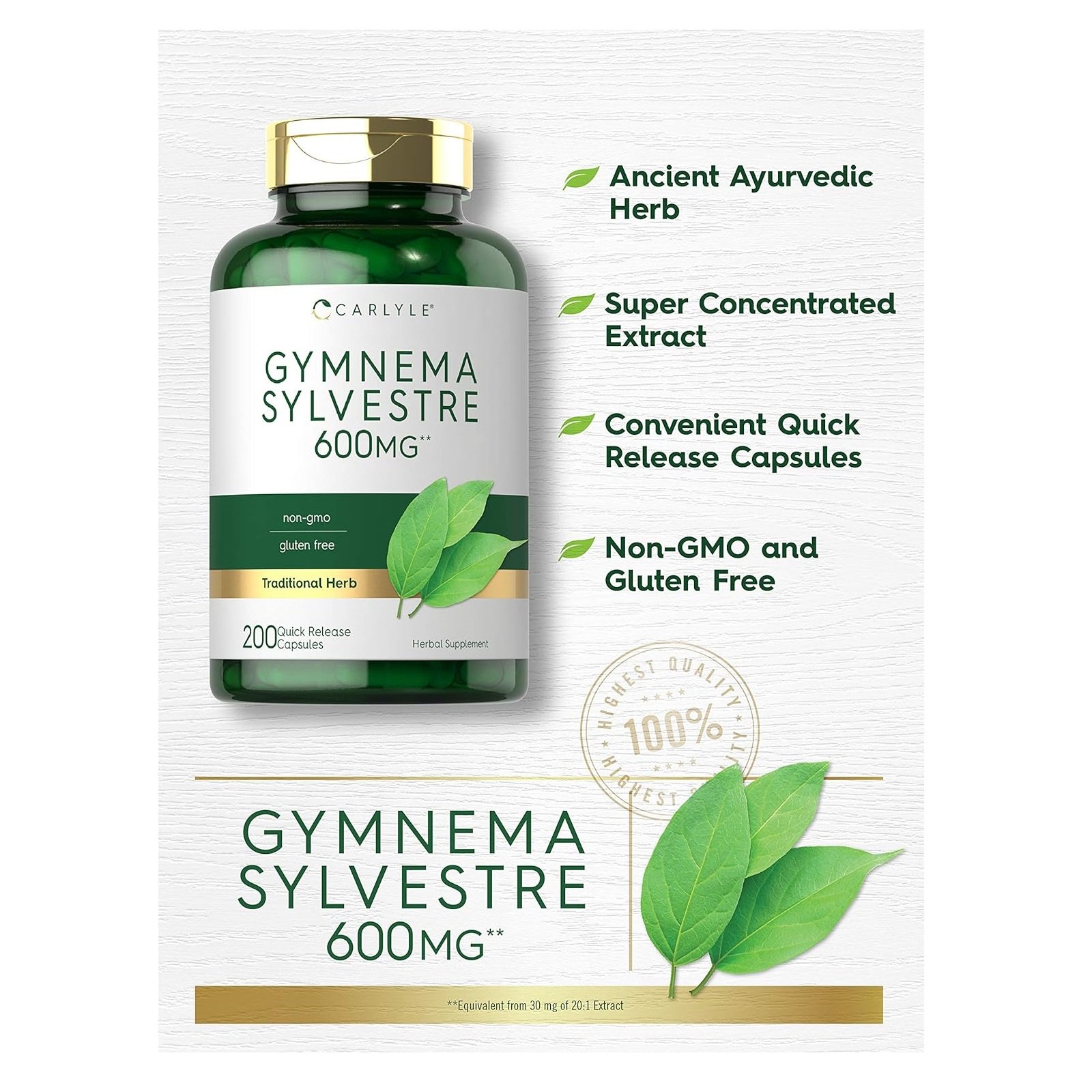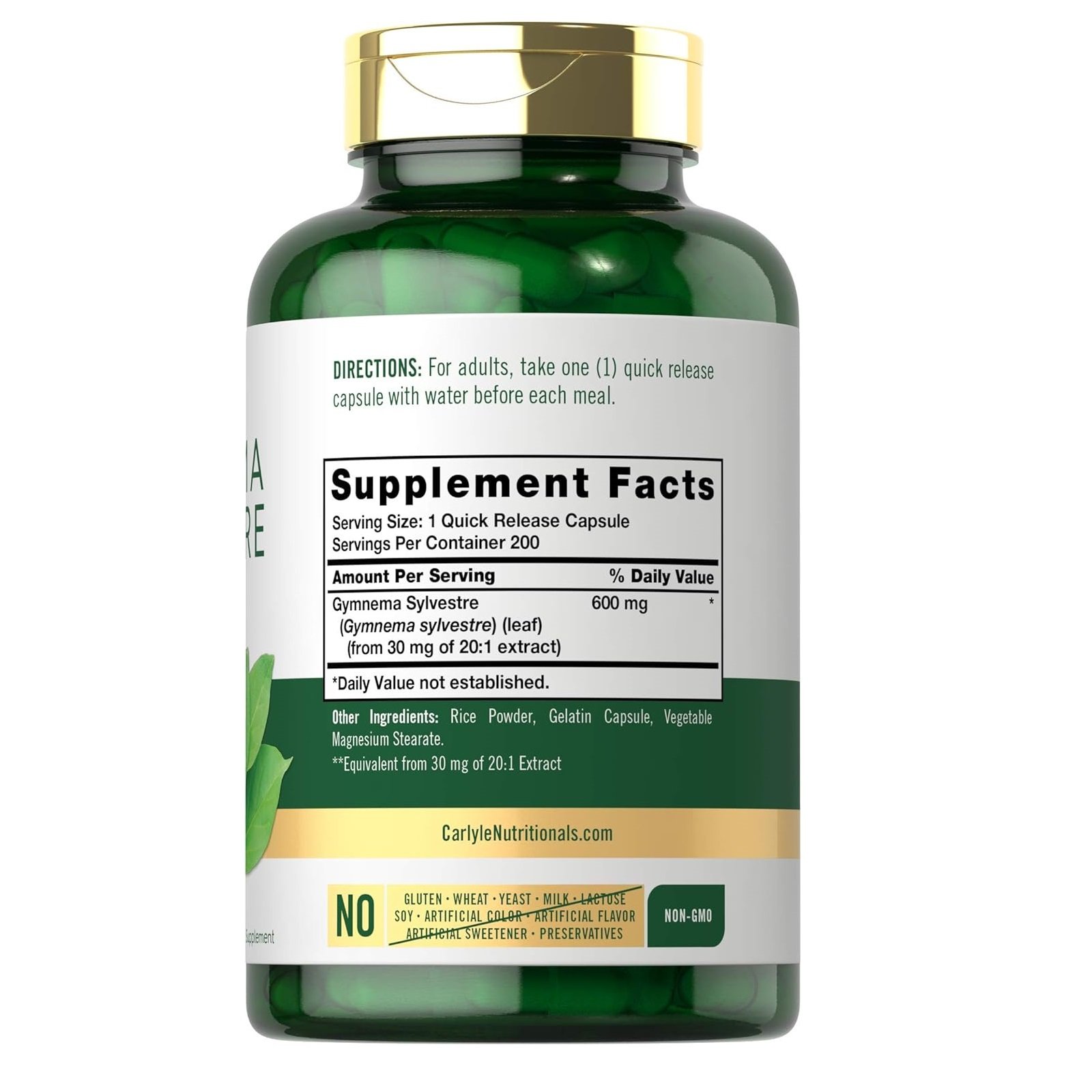 Carlyle Gymnema Sylvestre Capsules | 600mg | 200 Count | Non-GMO and Gluten Free Supplement