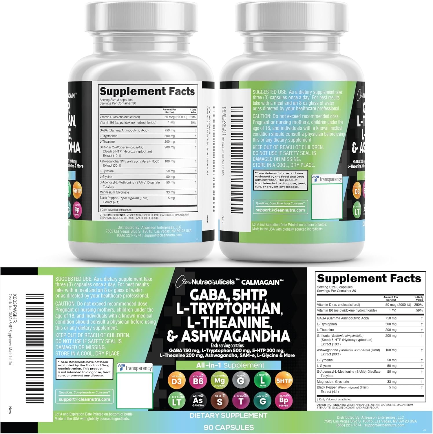 • The All In One 5 HTP Supplement You’ve Been Looking For – Clean Nutra CalmAgain provides multiple full-dose products in one Support & Balance Support complex containing a full L-Theanine and GABA Supplement in a convenient dose. Finally a bigger supplement than GABA , L-Theanine, and 5 HTP have been packed into one convenient solution.