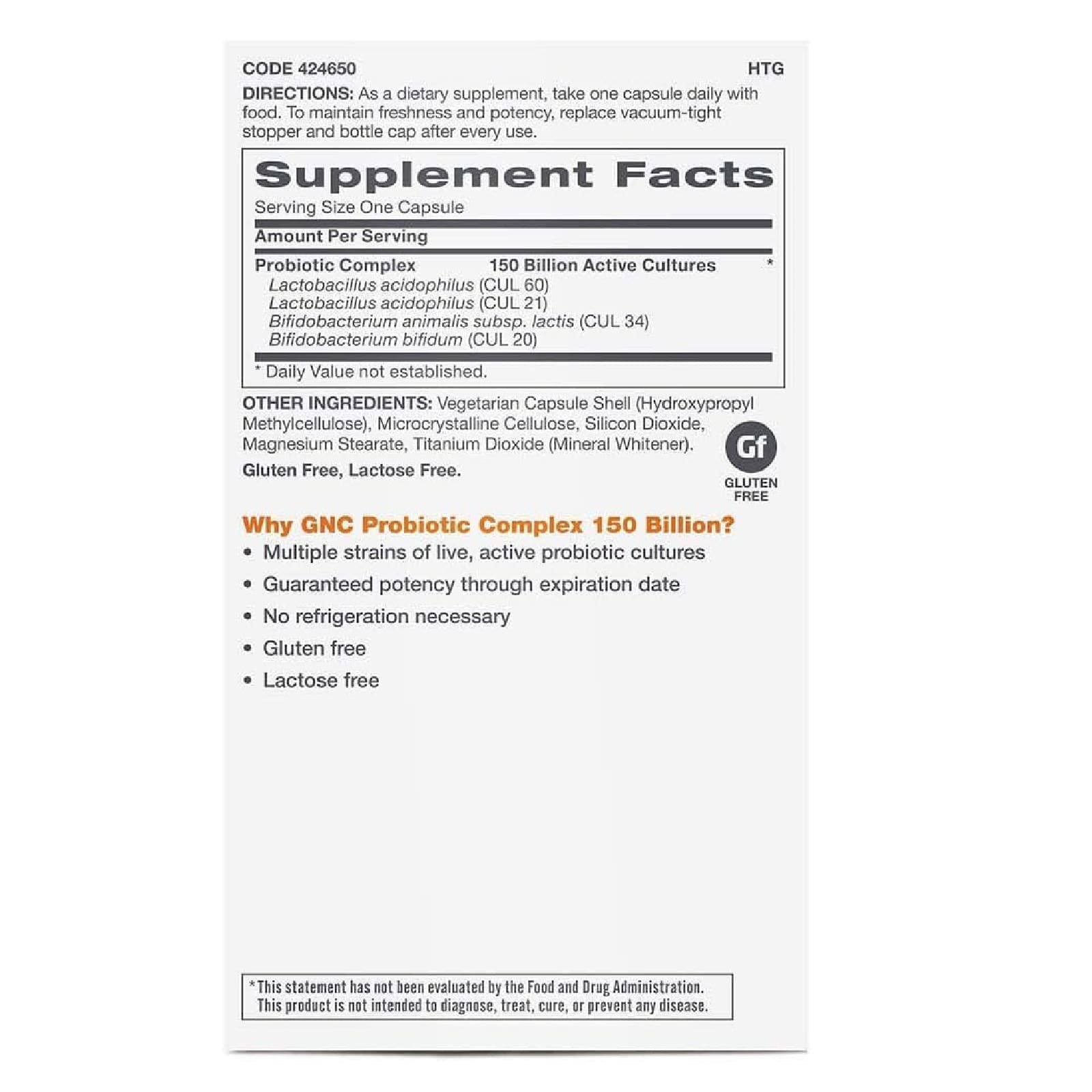 - Guaranteed Potency: GNC guarantees that the full number of cultures in each dose remains live and active until the expiration date.