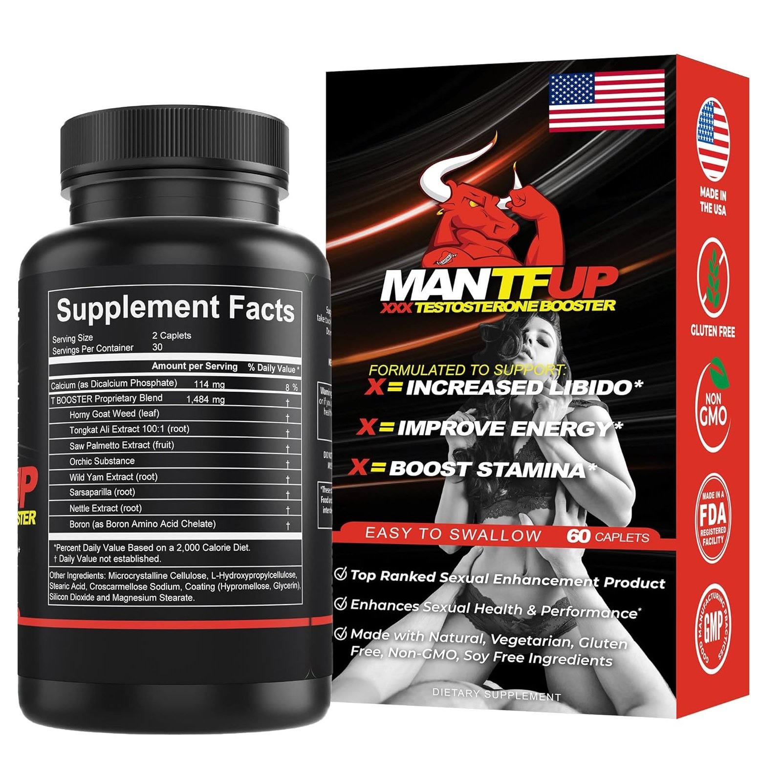 MANTFUP Vitality Enhancer for Men | Fast-Acting Testosterone Booster & Daily Supplement to Support Male Health & Libido | Potenciadores de Testosterona | Made in USA (1 Month Supply, 60 Caplets)