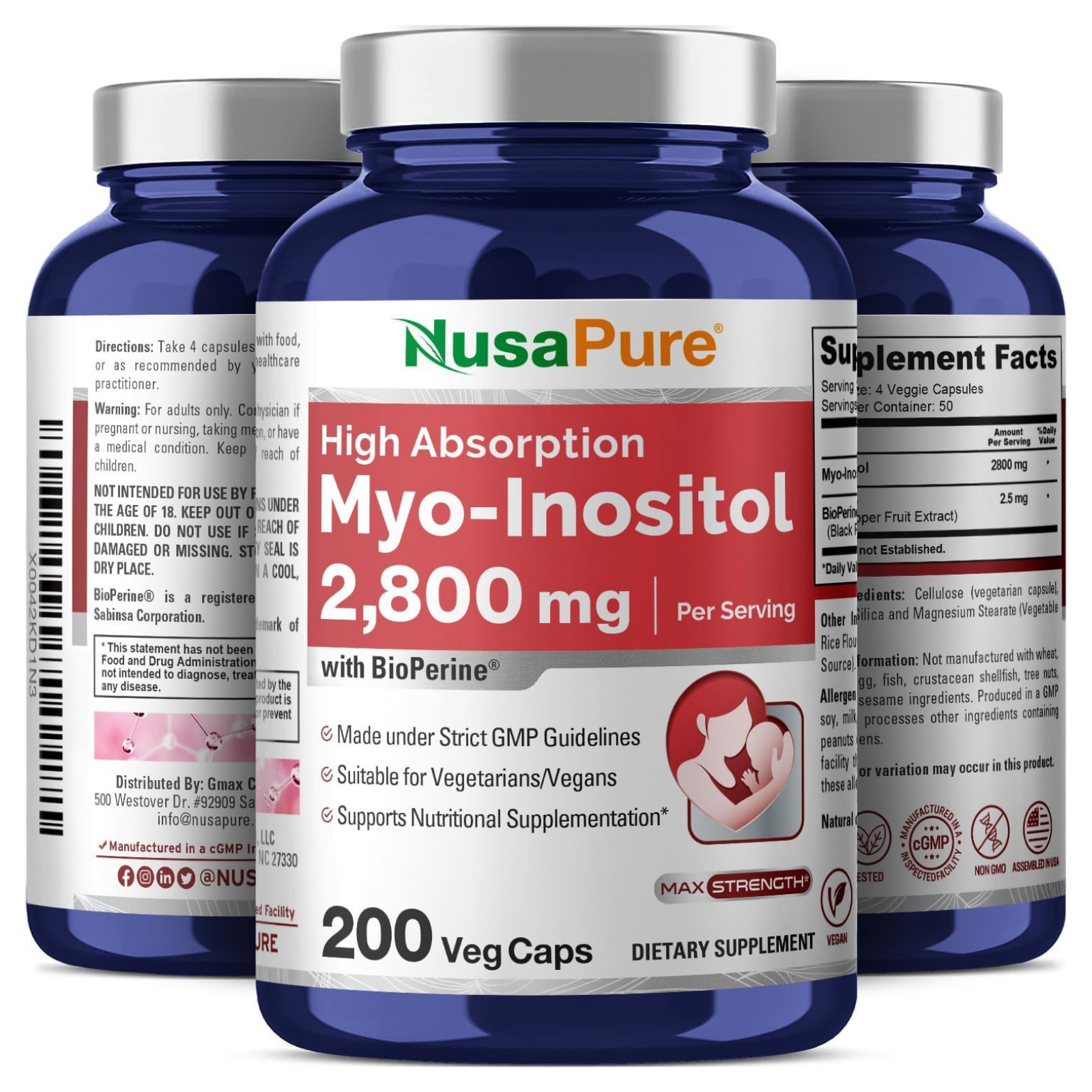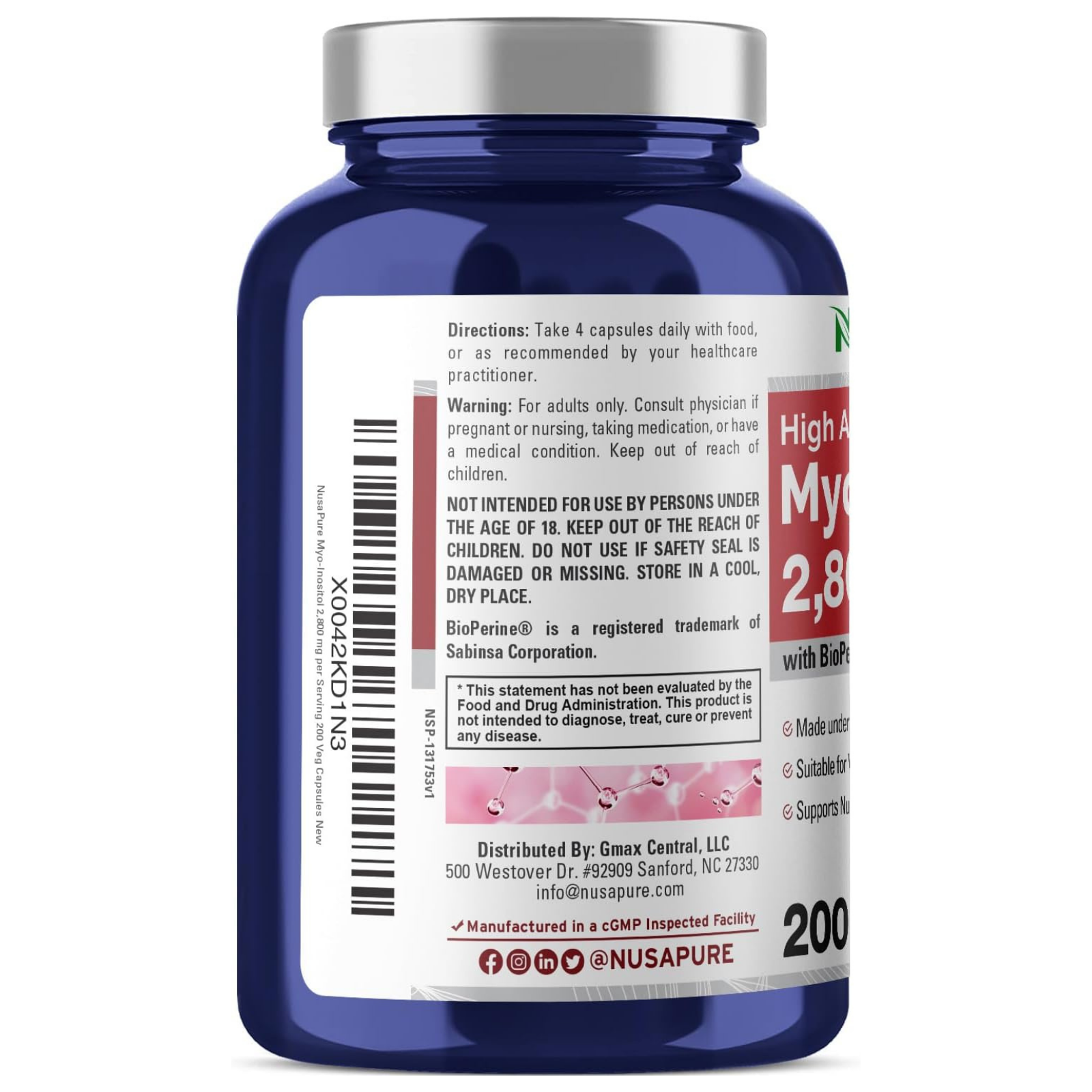 NusaPure Myo-Inositol – Suitable for Vegetarian/Vegan, Non – GMO – 2800mg, 200 Capsules